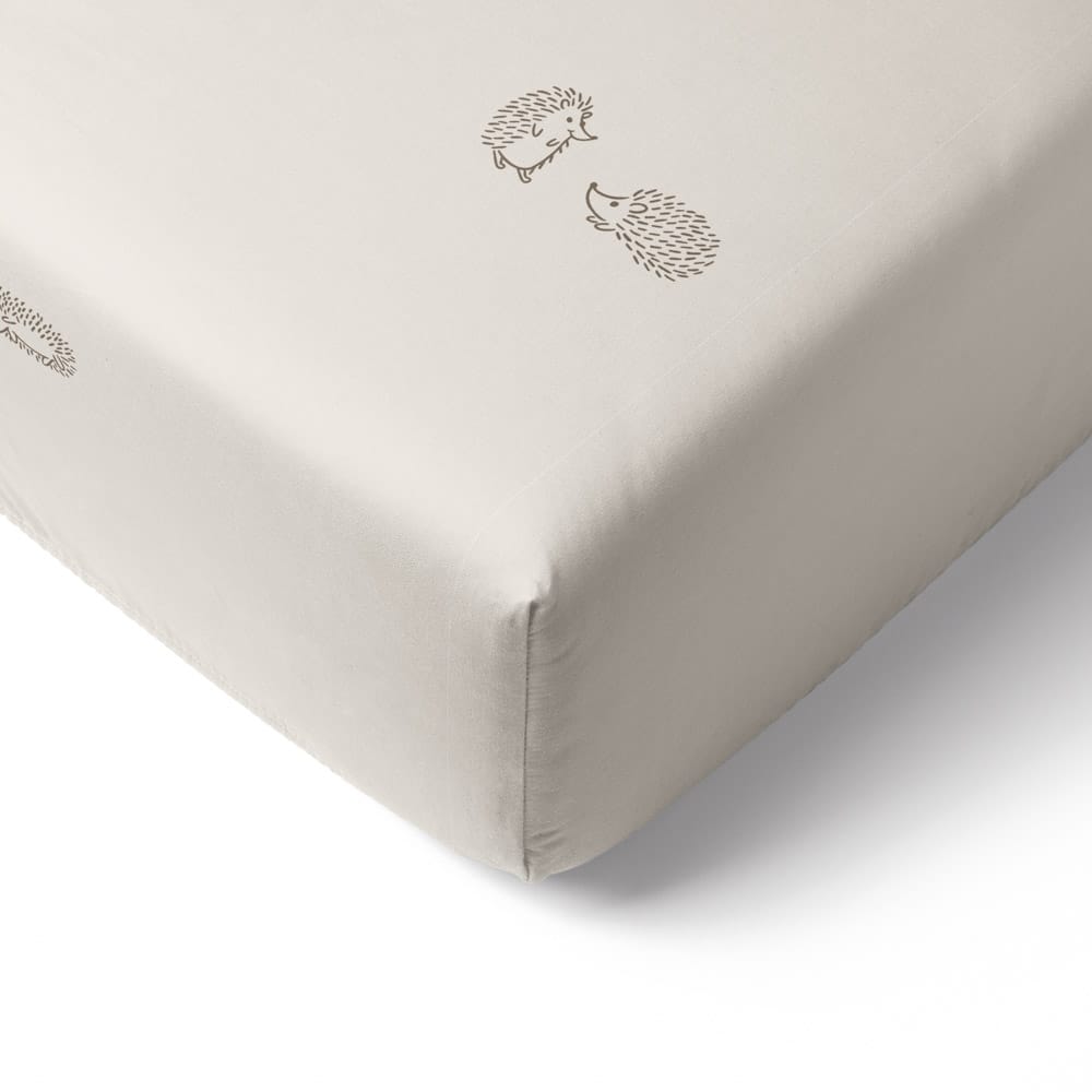 סדין בעיצוב קיפודים קטנטנים ומתוקים, משחקים על רקע בגוון אוטמיל רך, חמים ומלטף.