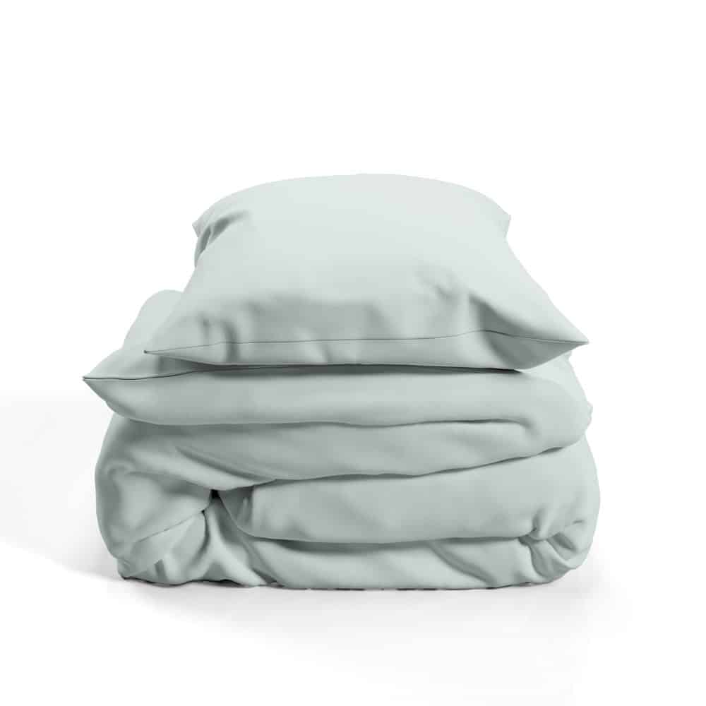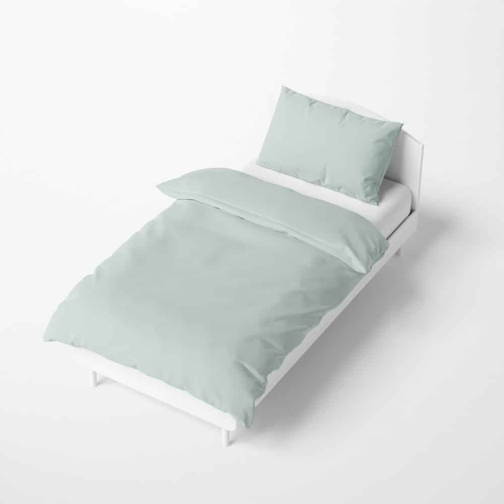 מצעים למיטת יחיד עשויים מ100% כותנה סרוקה רכה, בגוון מיסט בלו ורך, מושלם להירדמות רגועה ולחלומות מתוקים.
