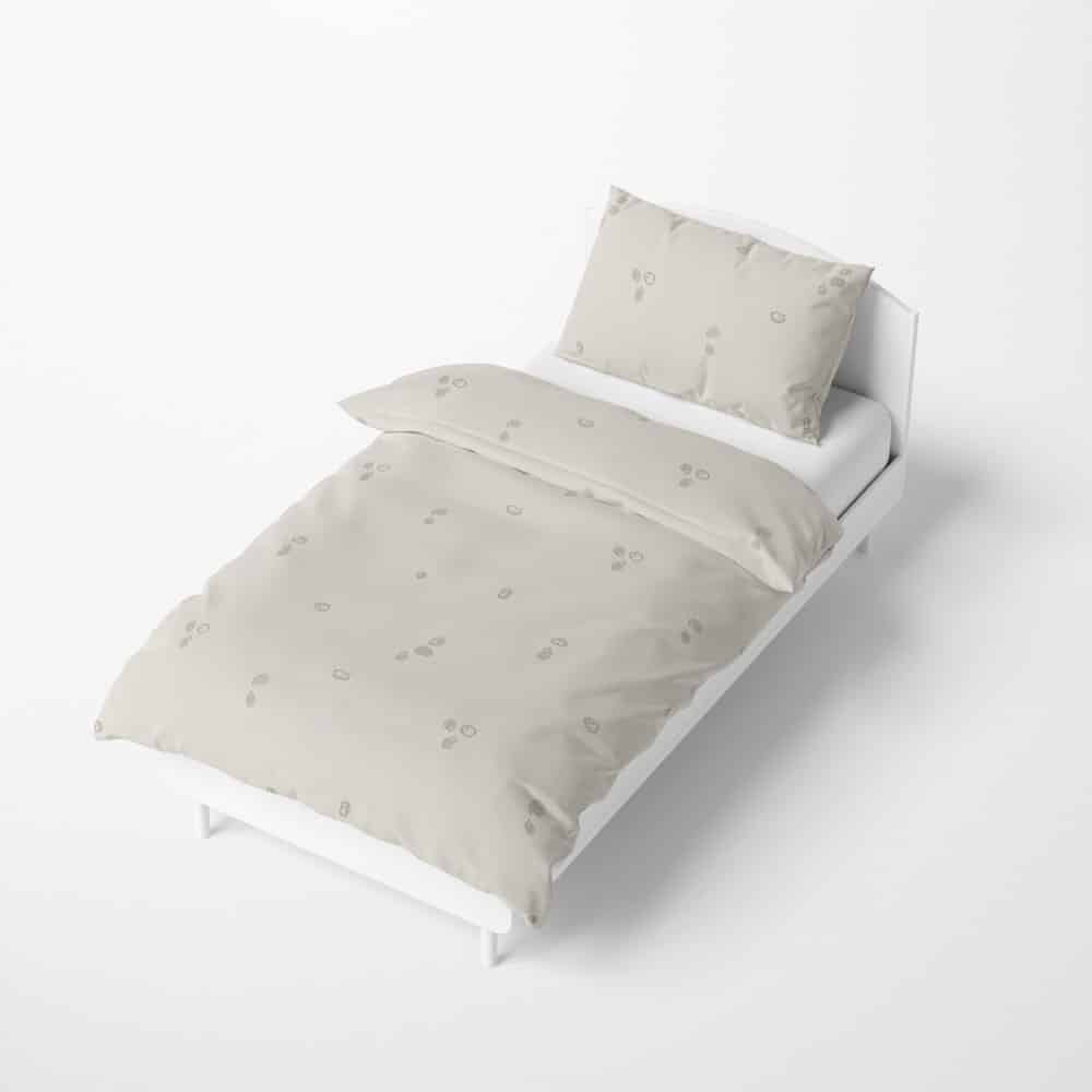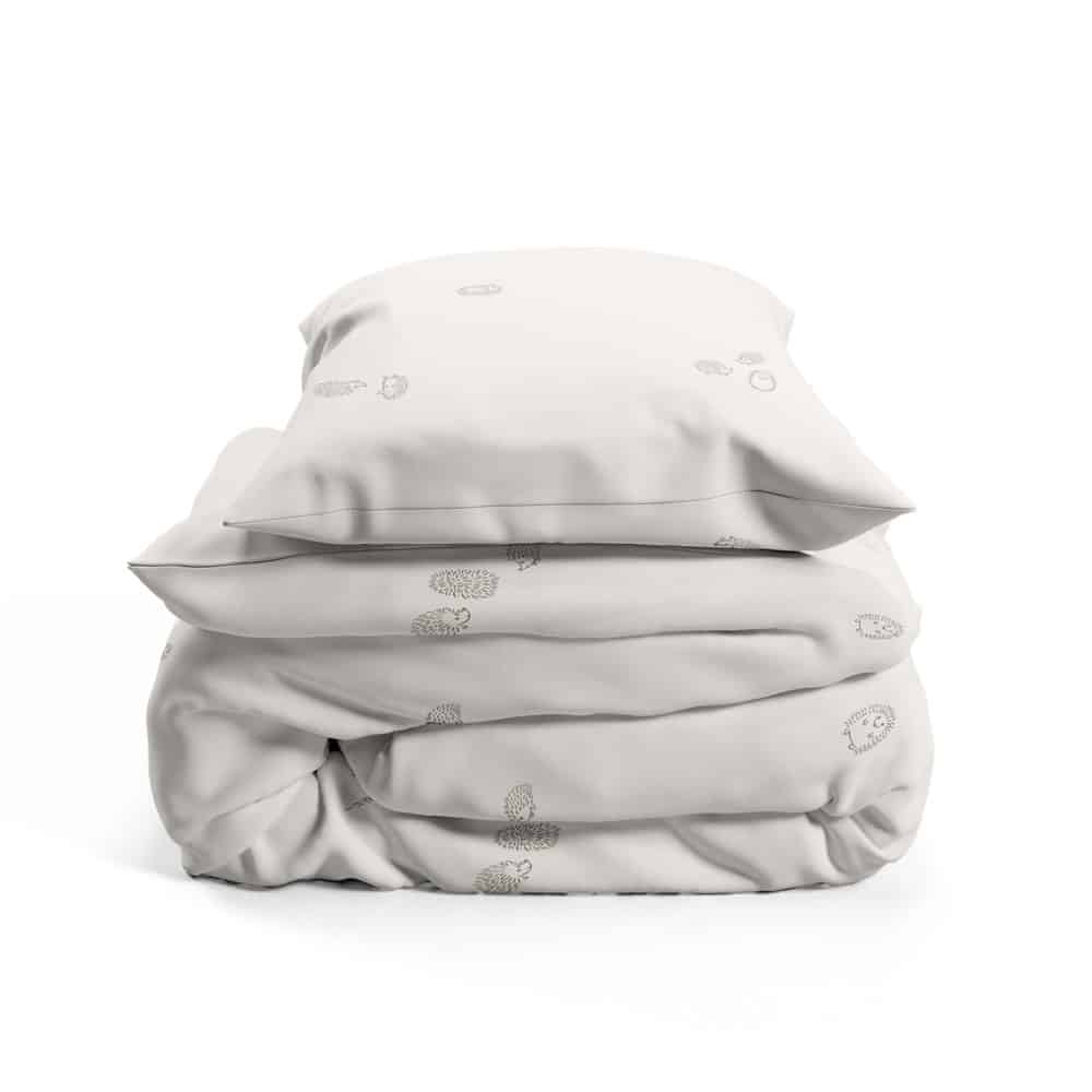 מצעים למיטת יחיד עשויים מ100% כותנה סרוקה רכה, בעיצוב קיפודים קטנטנים ומתוקים, משחקים על רקע בגוון אוטמיל רך, חמים ומלטף.